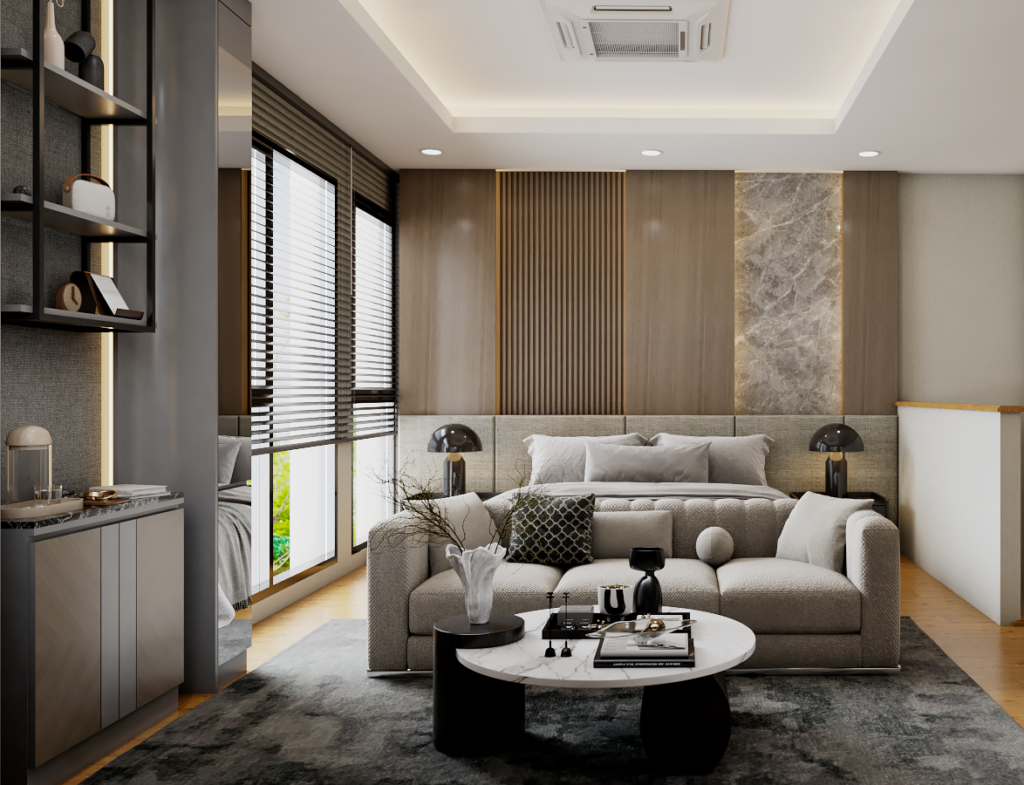 การออกแบบตกแต่งภายในที่เน้นความเรียบง่ายและเส้นสายที่ชัดเจน โดดเด่นด้วยการผสมผสานฟังก์ชันการใช้งานเข้ากับสุนทรียภาพอย่างลงตัว โดยมุ่งเน้นการใช้ประโยชน์จากพื้นที่ให้ได้มากที่สุด วัสดุที่ใช้มักมีความมันวาวและผิวสัมผัสที่ทันสมัย เช่น กระจก สแตนเลส หรือหินอ่อน การออกแบบที่พิถีพิถันนี้ไม่เพียงแต่ทำให้พื้นที่ดูหรูหราและร่วมสมัย แต่ยังสะท้อนถึงรสนิยมที่เรียบง่ายแต่ซับซ้อนของผู้ใช้งาน