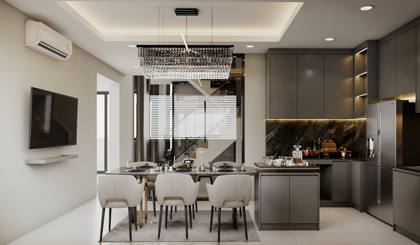 การออกแบบตกแต่งภายในที่เน้นความเรียบง่ายและเส้นสายที่ชัดเจน โดดเด่นด้วยการผสมผสานฟังก์ชันการใช้งานเข้ากับสุนทรียภาพอย่างลงตัว โดยมุ่งเน้นการใช้ประโยชน์จากพื้นที่ให้ได้มากที่สุด วัสดุที่ใช้มักมีความมันวาวและผิวสัมผัสที่ทันสมัย เช่น กระจก สแตนเลส หรือหินอ่อน การออกแบบที่พิถีพิถันนี้ไม่เพียงแต่ทำให้พื้นที่ดูหรูหราและร่วมสมัย แต่ยังสะท้อนถึงรสนิยมที่เรียบง่ายแต่ซับซ้อนของผู้ใช้งาน