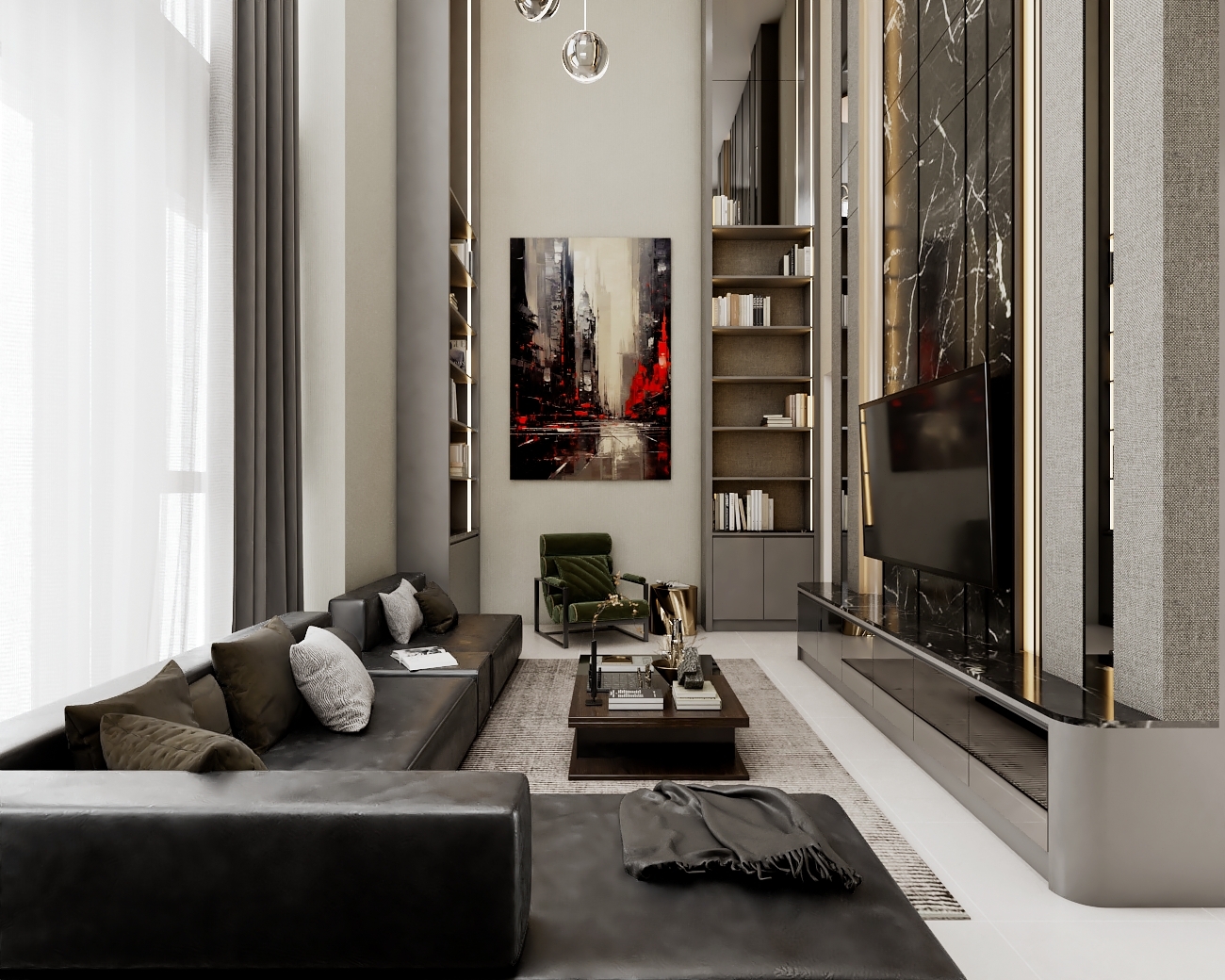 การออกแบบตกแต่งภายในที่มุ่งเน้นความประณีตและรสนิยมระดับสูง โดยใช้วัสดุคุณภาพเยี่ยมเพื่อสร้างความรู้สึกที่หรูหราและมีระดับ เช่น หินอ่อน กระจก คริสตัล ทองเหลือง และสเตนเลส การออกแบบจะเน้นเส้นสายที่สง่างามและรายละเอียดที่พิถีพิถัน พร้อมกับการใช้โทนสีเข้มอย่างดำ เทา และน้ำตาล รวมถึงการเพิ่มสีทองเพื่อความโดดเด่น สไตล์นี้สะท้อนถึงความสำเร็จและรสนิยมของผู้อยู่อาศัย ทำให้พื้นที่ดูมีมูลค่าและเป็นเอกลักษณ์เฉพาะตัว